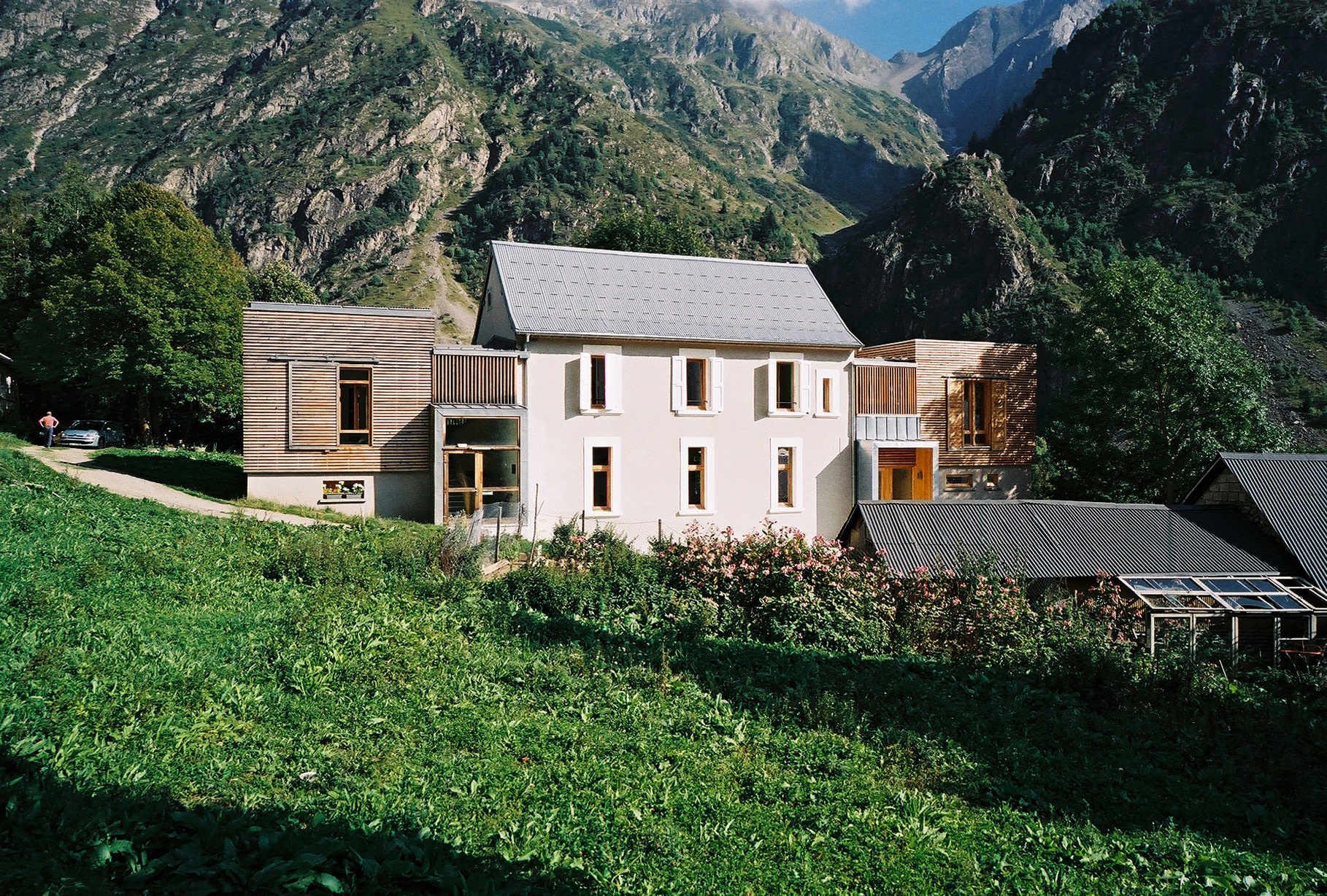 L’offre d’hébergement dont cette étape dispose a considérablement déclinée ces dernières années. Face à ce constat, la commune de Valjouffrey a engagé une stratégie de revitalisation de ce hameau « du bout du monde » en mêlant aux objectifs de satisfaction de la demande de randonneurs de plus en plus exigeants, des perspectives de maintien et de création d’emplois sur ce territoire. Pour ce faire, le scénario d’évolution urbaine du hameau a affecté à l’ancienne école le rôle du futur gîte et à sa cour le statut d’une place publique tournée vers le grand paysage. L’ambition architecturale concernant l’ancienne école, bâtiment caractéristique de la fin du XIX° siècle, a porté sur la volonté de le débarrasser des rajouts qui l’encombraient et d’affirmer par de nouvelles extensions sa symétrie d’origine. La symétrie vise dans ce cas la reconstruction d’une image immédiatement identifiable, l’image d’un équipement fédérateur que l’on distingue même après une journée de marche.