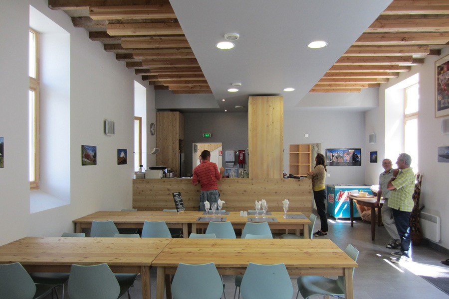A l’issue des deux tranches de travaux, le gîte qui atteint désormais des performances énergétiques du niveau BBC, accueille 30 couchages à l’étage et les espaces de vie collective au rez-de-chaussée. Son chauffage au bois et sa ventilation double-flux assurent le confort de usagers et visent une extension de sa période d’exploitation. Le mobilier dessiné « sur-mesure » et l’attention portée à l’accueil de tous les publics (gîte accessible) en font un équipement attractif et solidaire. Le principe de polyvalence de la salle de restauration permet enfin de donner une place à de nouvelles fonctions et à d’autres temporalités d’usage : expositions, repas associatifs, fêtes familiales, séminaires professionnels. Le site est désormais un espace pour se ressourcer et un espace « ressource » pour le village, un lieu mis à la disposition d’une diversité d’usagers, au-delà d’un public touristique jusque là estimé « captif ».